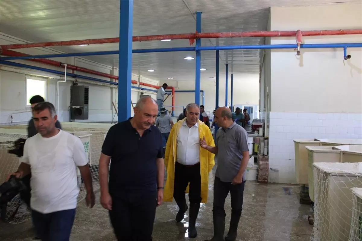 Tarım ve Orman Vilayet Müdürü Sadettin Taşkesen ile Balıkçılık ve Su Eserleri Şube Müdürü Cevat Yılmaz, tesiste incelemelerde bulundu.